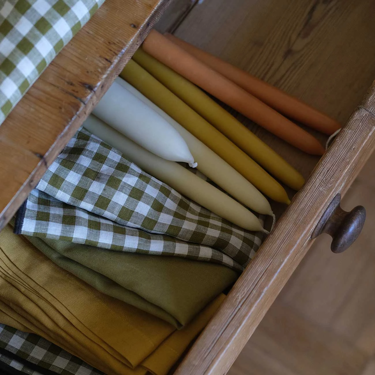 Our elegant Groundnut beeswax dining candles are made in small batches in the UK with traditional hand-dipping methods. Using pure beeswax and natural wax dyes, these earthy orange candles release a subtle aroma of honey when lit. The candles are sold in pairs joined at the wick.