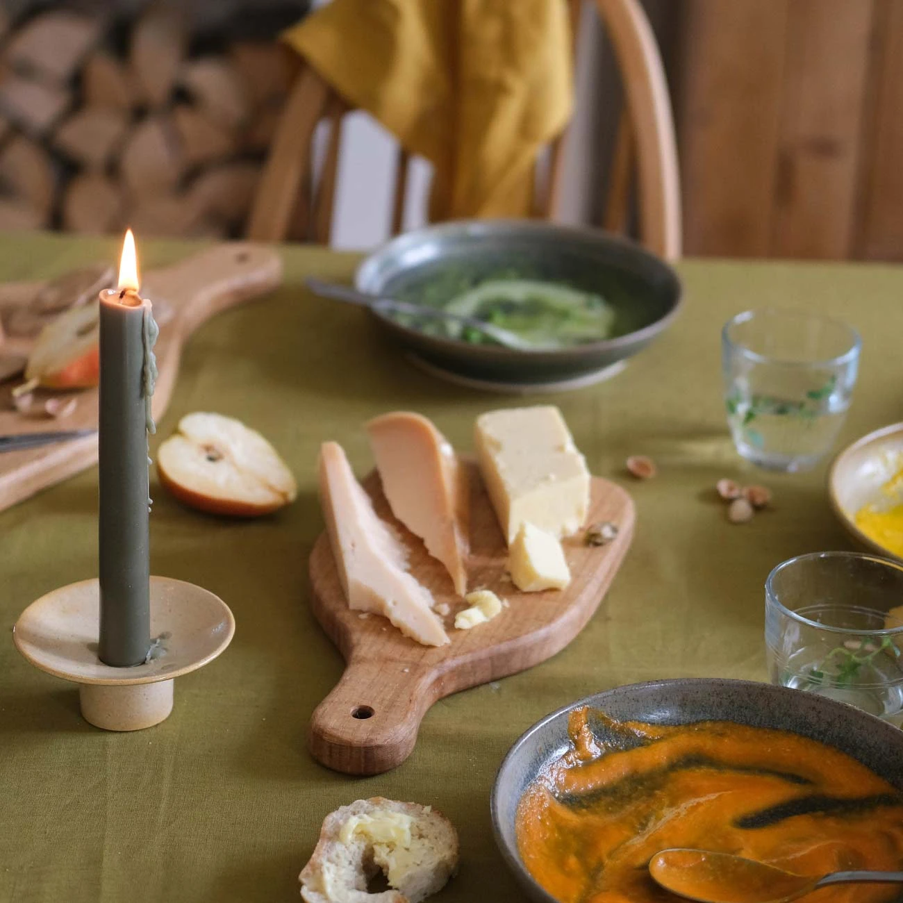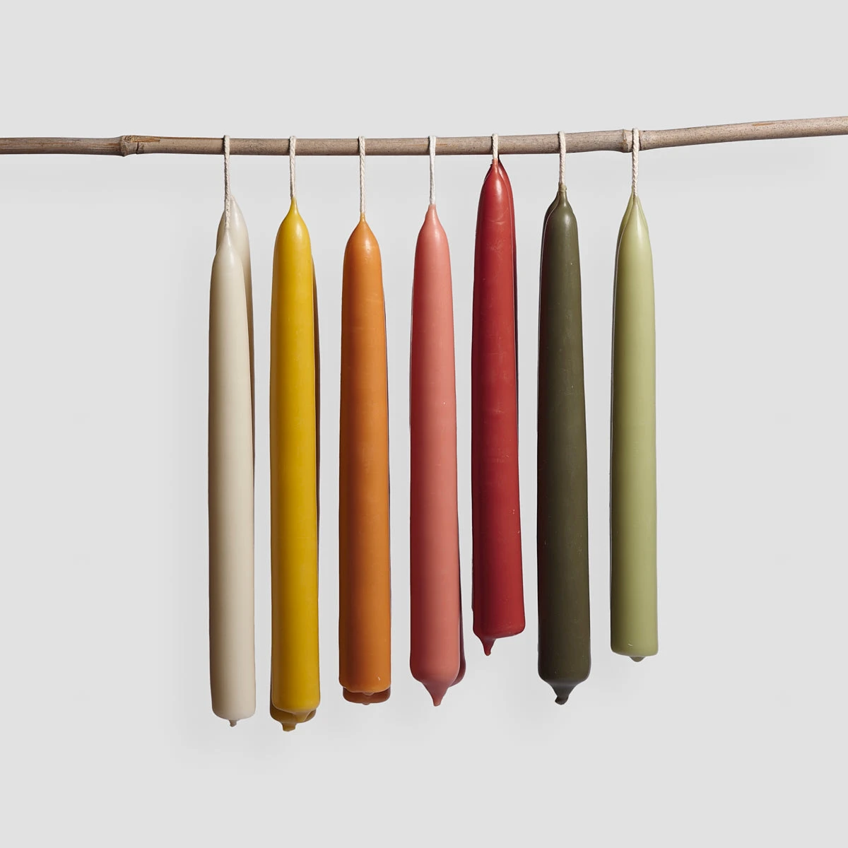 Our elegant Nettle beeswax dining candles are made in small batches in the UK with traditional hand-dipping methods. Using a blend of beeswax and green tea wax, these forest green candles release a subtle aroma of matcha tea and honey when lit. The candles are sold in pairs joined at the wick.