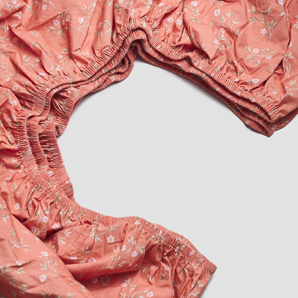 With a delicate floral motif and mellow orange hue, our Apricot Spring design is inspired by a vintage pattern sourced from The Design Library archives. Woven from 100% washed cotton percale, this bedding is soft and breathable with a beautiful matte finish and relaxed feel. Our fitted sheets have elasticated edges all the way around and fit mattresses up to 40cm deep.
