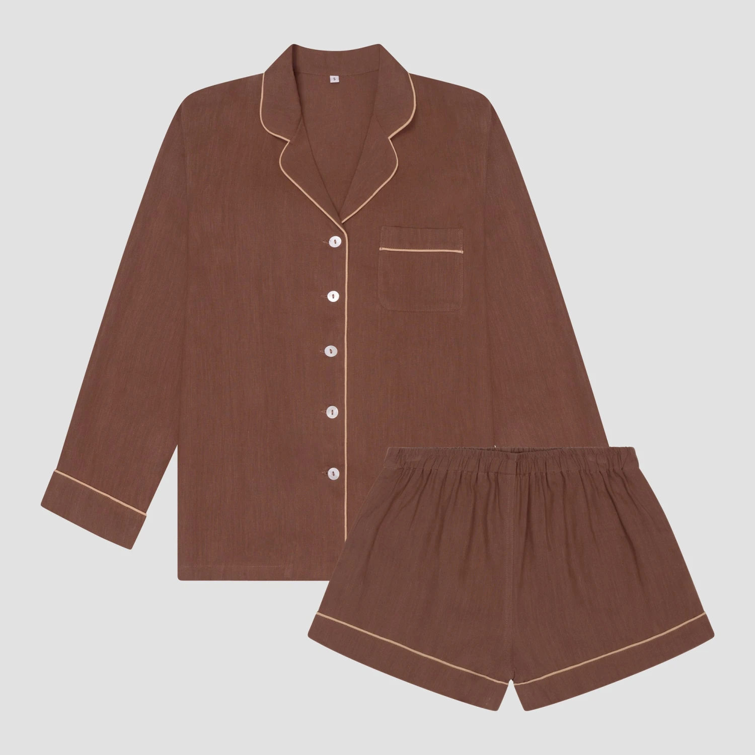 Barley Brown Linen Tencel Pyjama Shorts Set