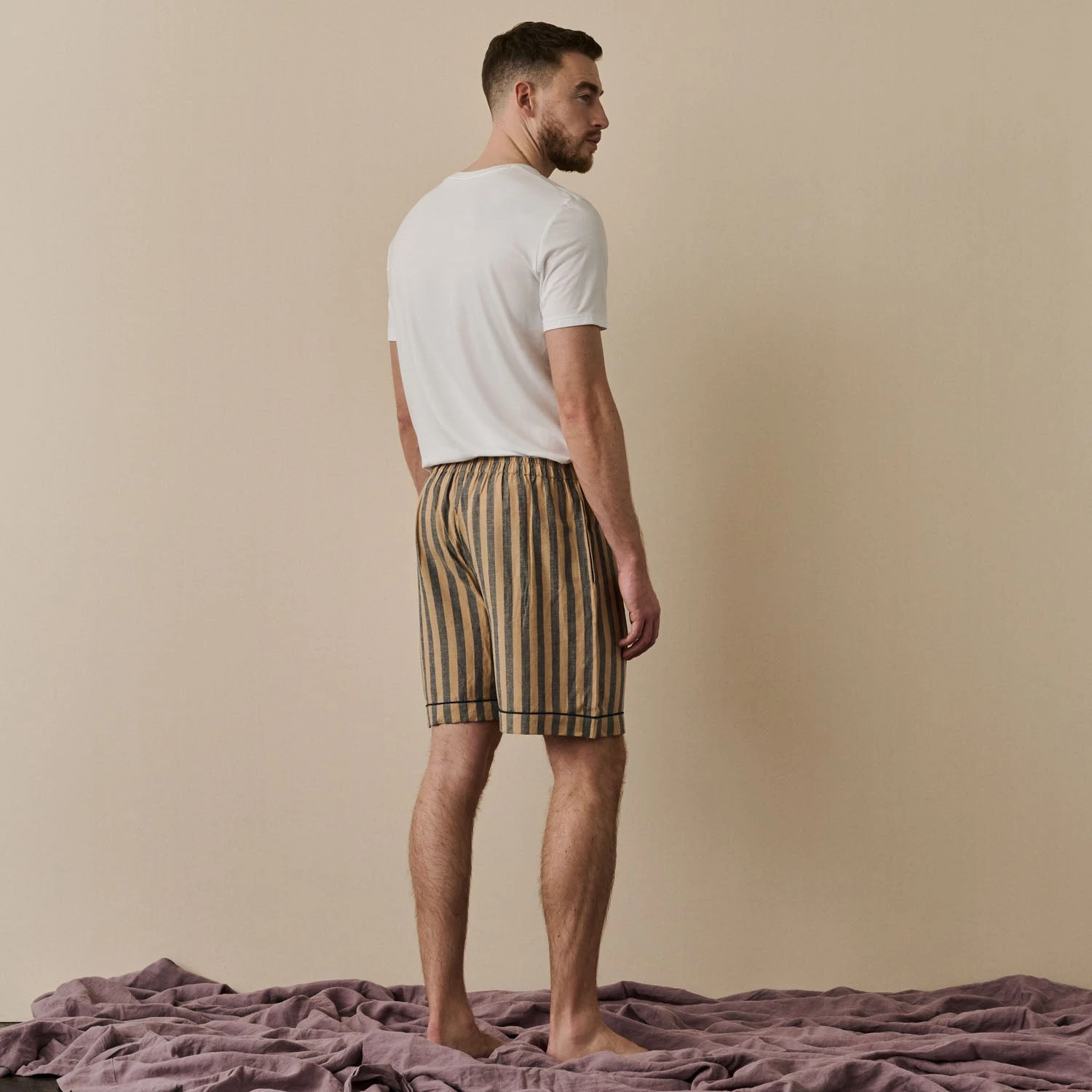 Blue & Porcini Striped Linen Tencel Men’s PJ Shorts