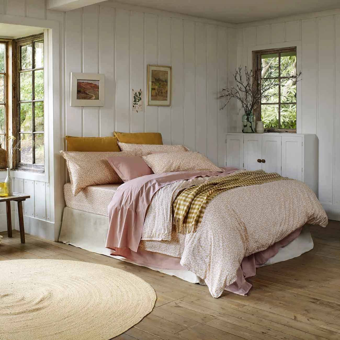 Meet our first floral cotton bedding collection, inspired by the romantic charm of English country houses. Working with The Design Library – the world’s largest collection of documentary fabrics, paintings, prints and patterns – we sourced an archival floral print and updated it for a modern setting, resulting in our new ‘Meadow’ bedding range. Our Meadow Floral Printed Cotton Duvet Covers are designed to be mixed and matched with our plain cotton colours, with our Butterscotch Meadow collection pairing particularly well with French Rose and Pear.