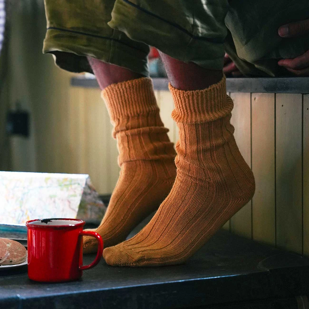 Keep your feet toasty warm at home with these thick bed socks, in Honey, made from the finest and softest alpaca wool. Alpaca wool is antibacterial, moisture-wicking and thermo-regulating, meaning that your feet will stay just the right temperature and you won’t need to wash them after every wear. Knitted with care in England, they are chunky, soft and slouchy: just right for padding around the house.