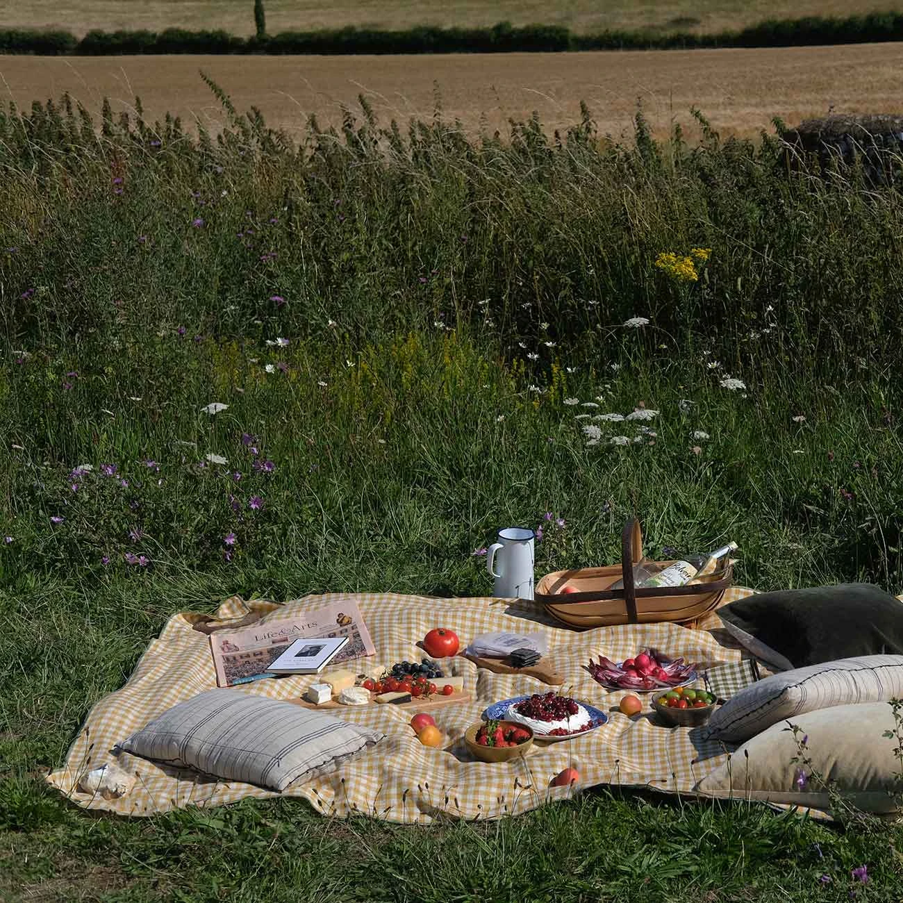 Made in Portugal from 100% European flax, our Linen Tablecloths create beautiful tablescapes for entertaining your nearest and dearest. Shown here in our pretty Honey Gingham pattern with a contrasting overlocked border in Pear green. Mix and match with any one of our stonewashed napkin sets from our dining collection to create an elegant, textured set-up.