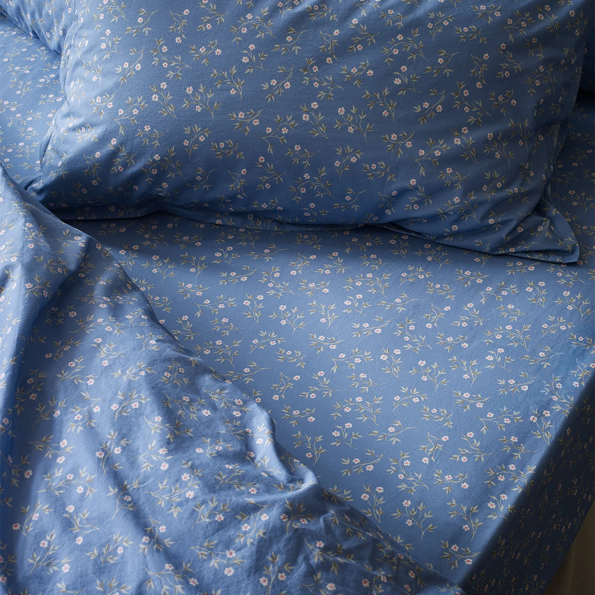 With a powder blue hue and delicate floral motif, our Iris Spring Sprig design is inspired by a vintage pattern sourced from The Design Library archives. Woven from 100% washed cotton percale, this bedding is soft and breathable with a beautiful matte finish and relaxed feel. Our fitted sheets have elasticated edges all the way around and fit mattresses up to 40cm deep.