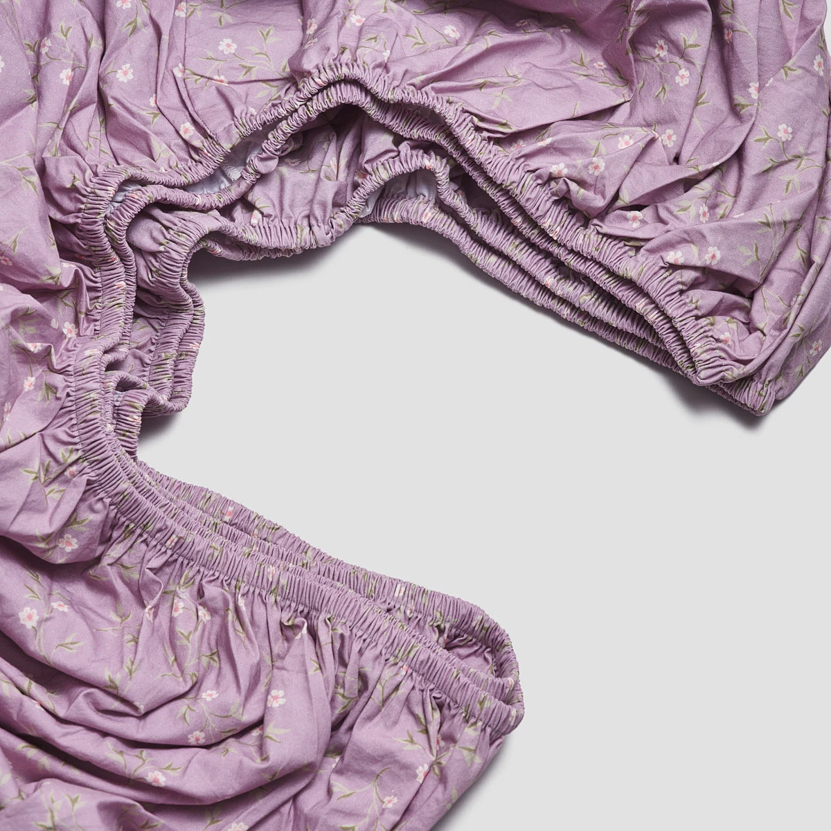 With a dainty floral motif and powdered lilac hue, our Lupin Spring Sprig design is inspired by a vintage pattern sourced from The Design Library archives. Woven from 100% washed cotton percale, this bedding is soft and breathable with a beautiful matte finish and relaxed feel. Our fitted sheets have elasticated edges all the way around and fit mattresses up to 40cm deep.