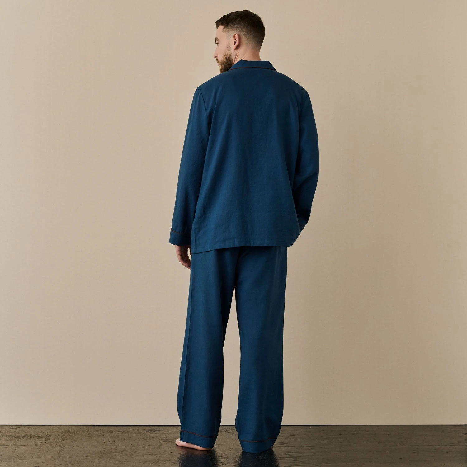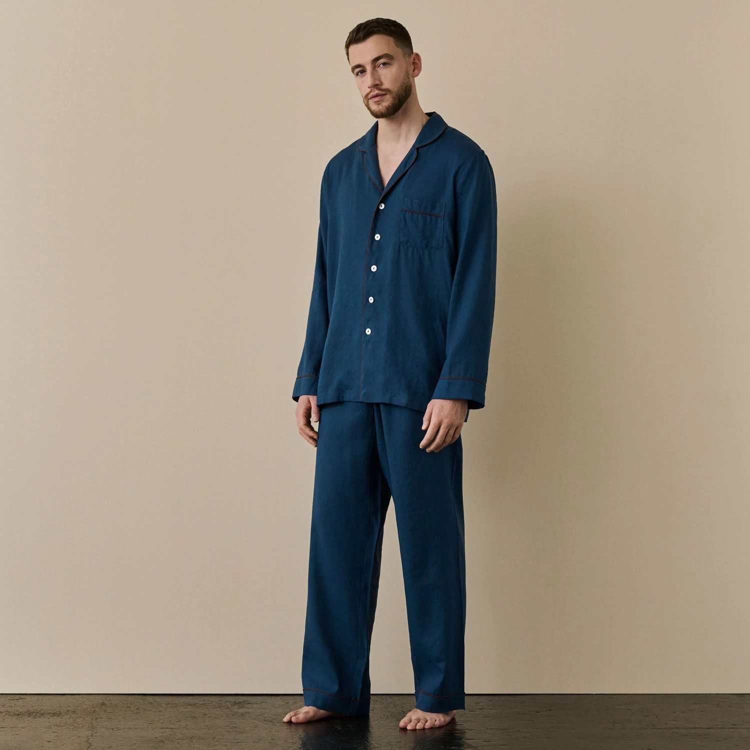 Marine Blue Linen Tencel Men’s Pyjama Trouser Set