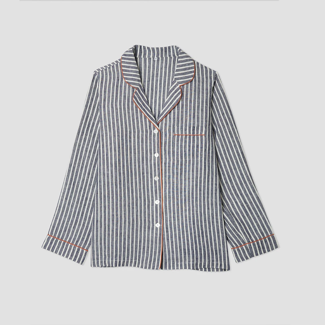 Made for those who like their sleepwear to be timeless yet comfortable, our Midnight Stripe Linen Pyjama Shirt is made from super soft 100% stonewashed linen. Linen keeps you cosy and warm in the winter and cool in the summer. Our linen pyjama shirt can be paired with our pyjama trousers to complete the look.