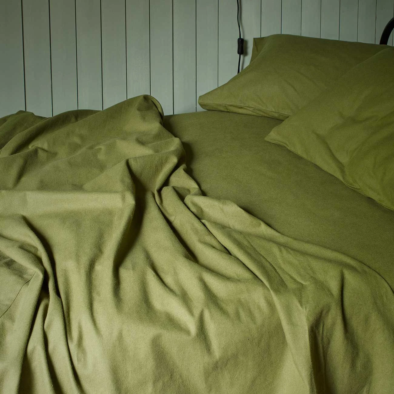 Create a cosy, relaxed space with our earthy Olive Green brushed cotton fitted sheet. Woven from a blend of sustainably sourced cotton and TENCELâ„¢ fibres, the buttery soft fabric is warm yet breathable, keeping you comfortable on cooler nights. Our fitted sheets have elasticated edges all the way around and fit mattresses up to 40cm deep.