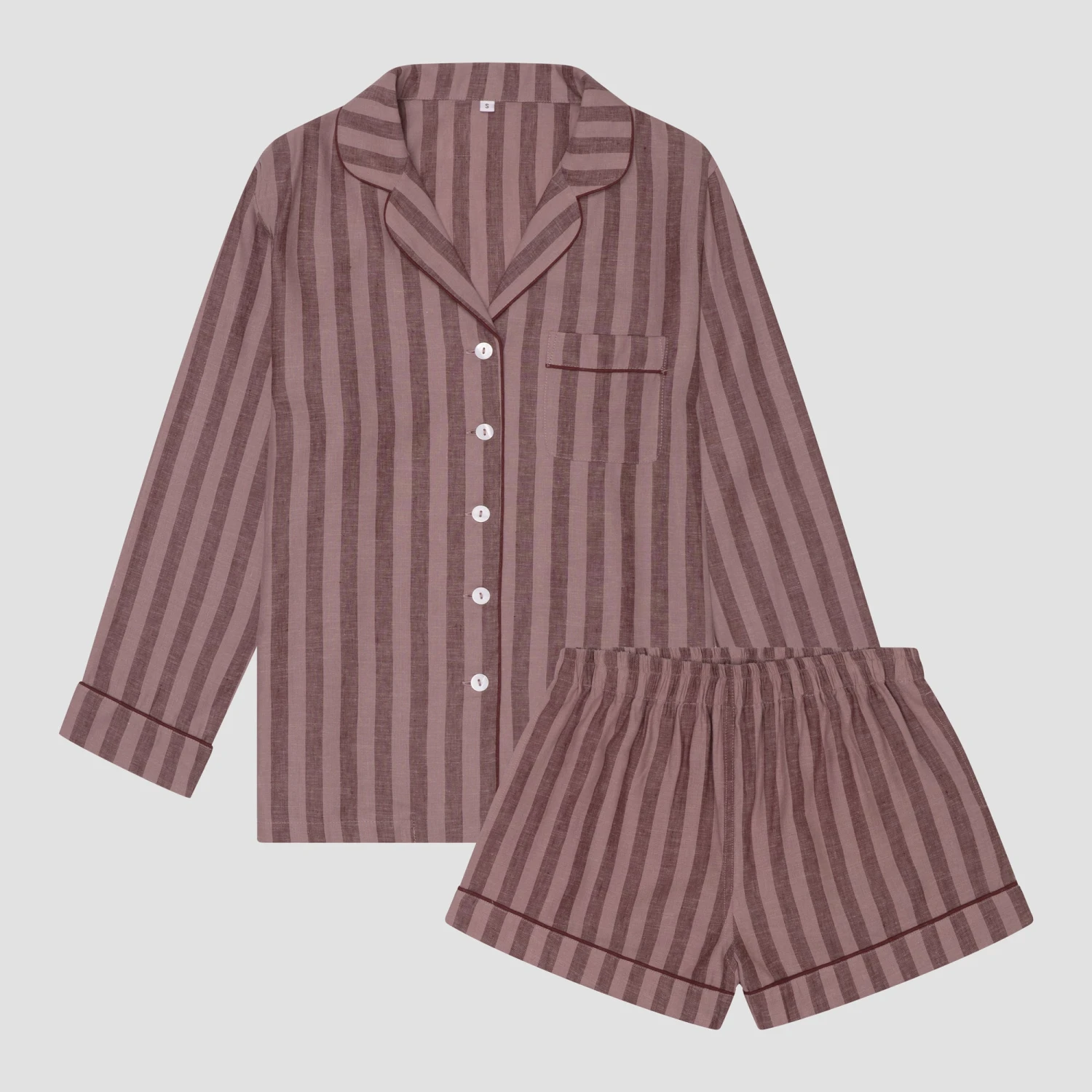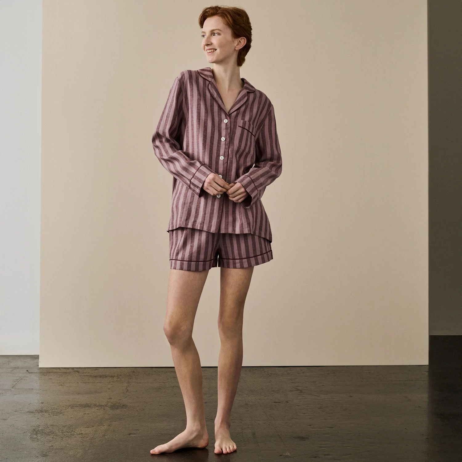 Port & Woodrose Striped Linen Tencel Women’s PJ Shorts Set