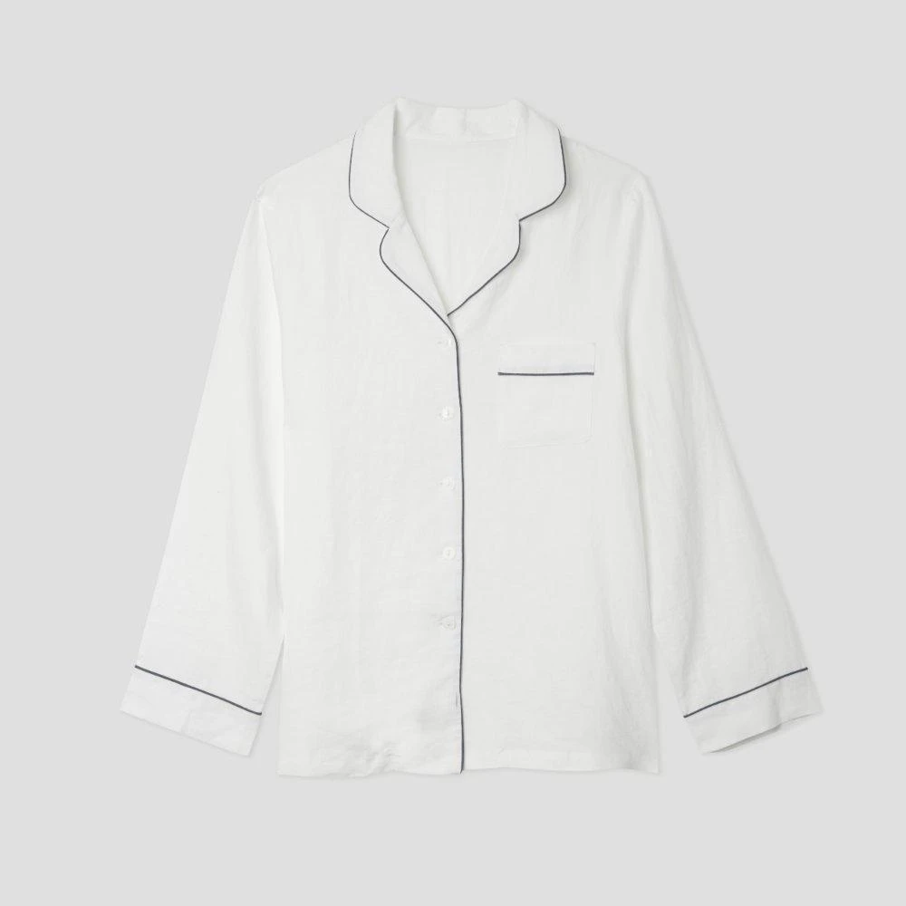 Made for those who like their sleepwear to be timeless yet comfortable, our White women’s pyjama shirt is made from super soft 100% stonewashed linen. Linen keeps you cosy and warm in the winter and cool in the summer. Our linen pyjama shirt can be paired with our pyjama trousers to complete the look.